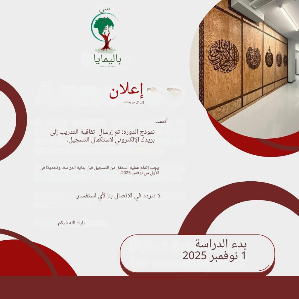 يرجى تأكيد تسجيلكَ قبل ١ نوفمبر ٢٠٢٥، موعد بدء الدورات.