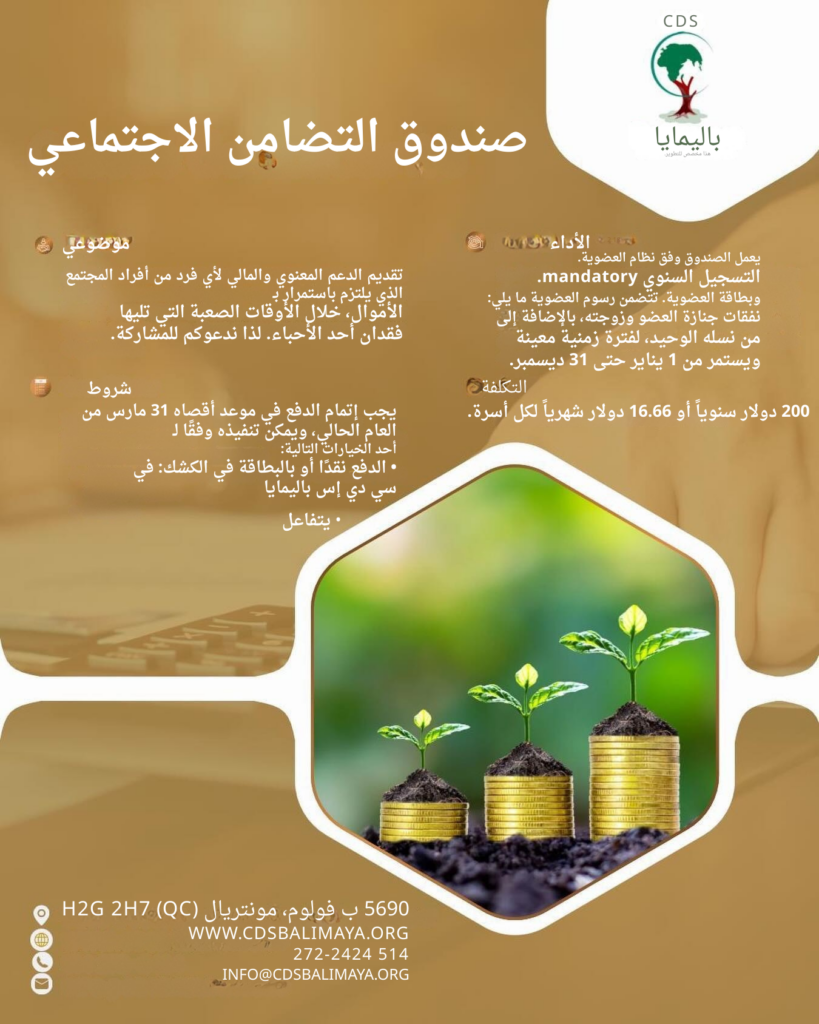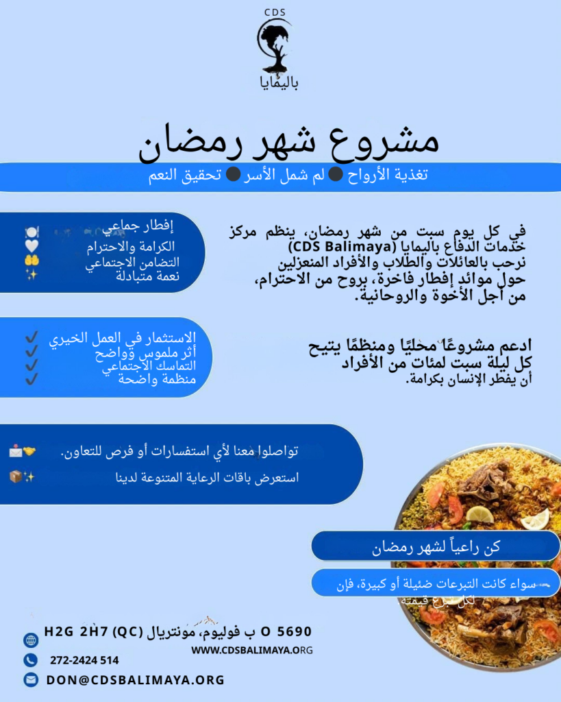 للمزيد من المعلومات، يُرجى الاتصال بنا على الرقم (514) 272-2424 تحويلة 22، أو زيارة الموقع الإلكتروني https://www.cdsbalimaya.org/programme-du-fonds-de.../.