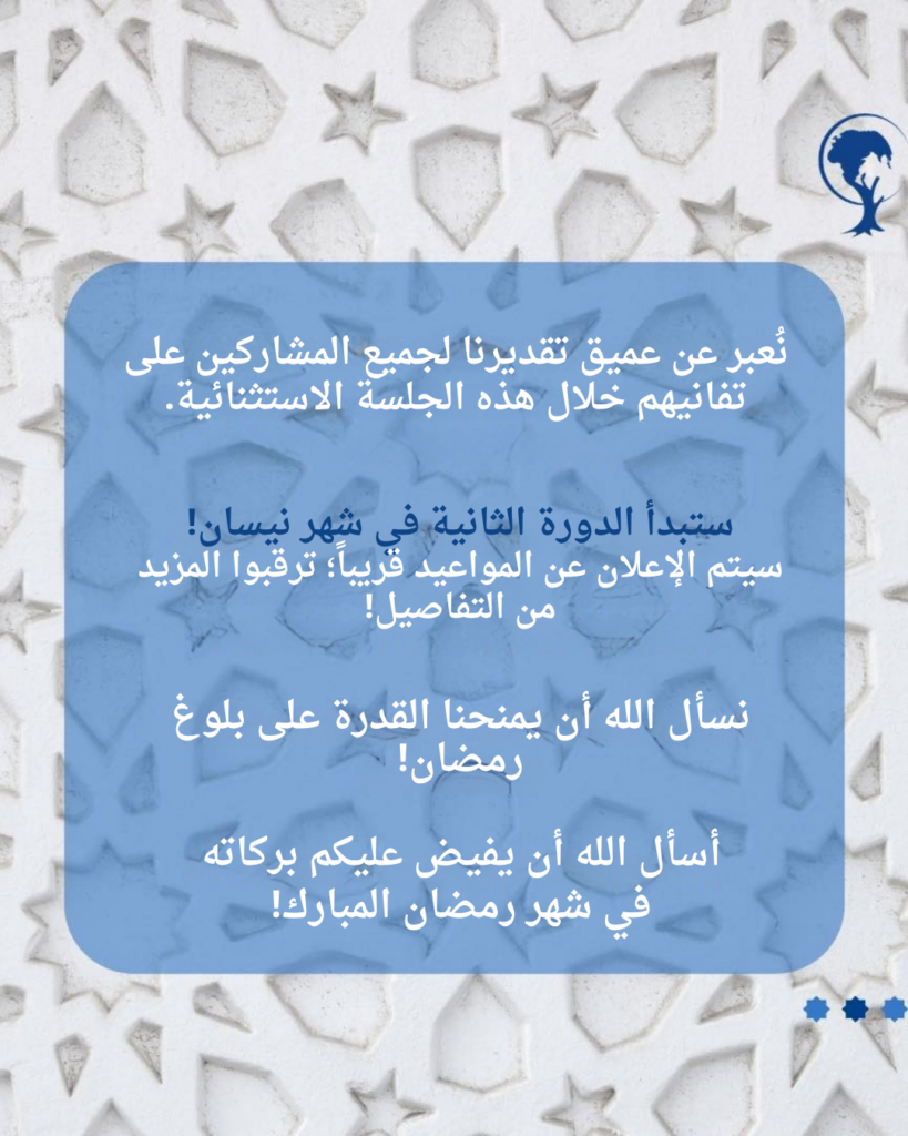 نتطلع بشوق إلى لقائكم في الدورة القادمة التي تبدأ في أبريل. سيتم الإعلان عن المواعيد الرسمية قريبًا جدًا.
